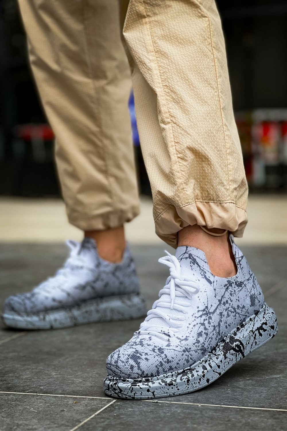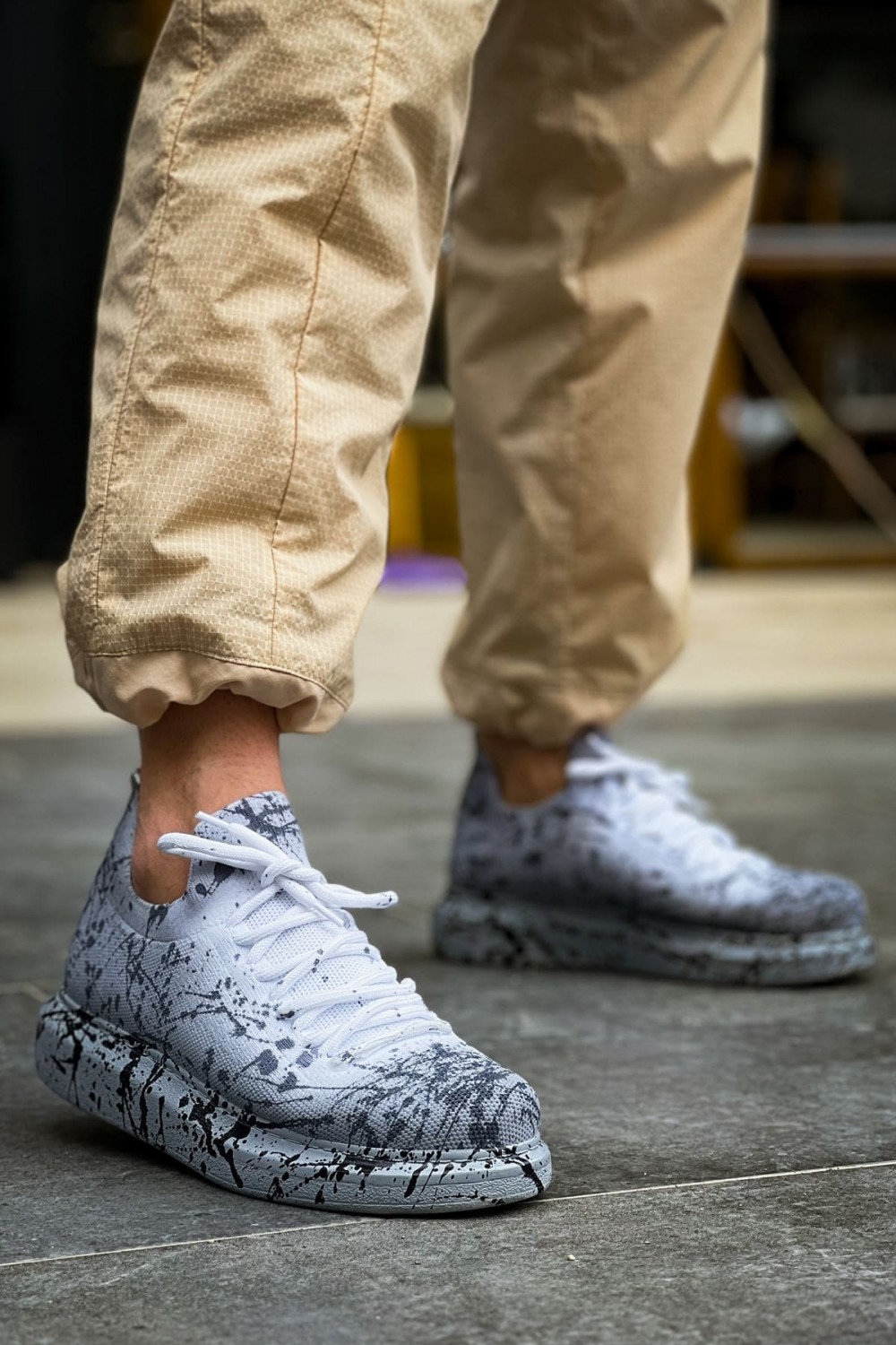 CH307 Tricot Erkek Günlük Bağcıklı Siyah Splush Baskılı Triko Spor Sneaker Ayakkabı TRT - Gri