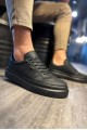 KN013 Erkek Günlük Bağcıklı Cilt Spor Sneaker Ayakkabı CST - Siyah