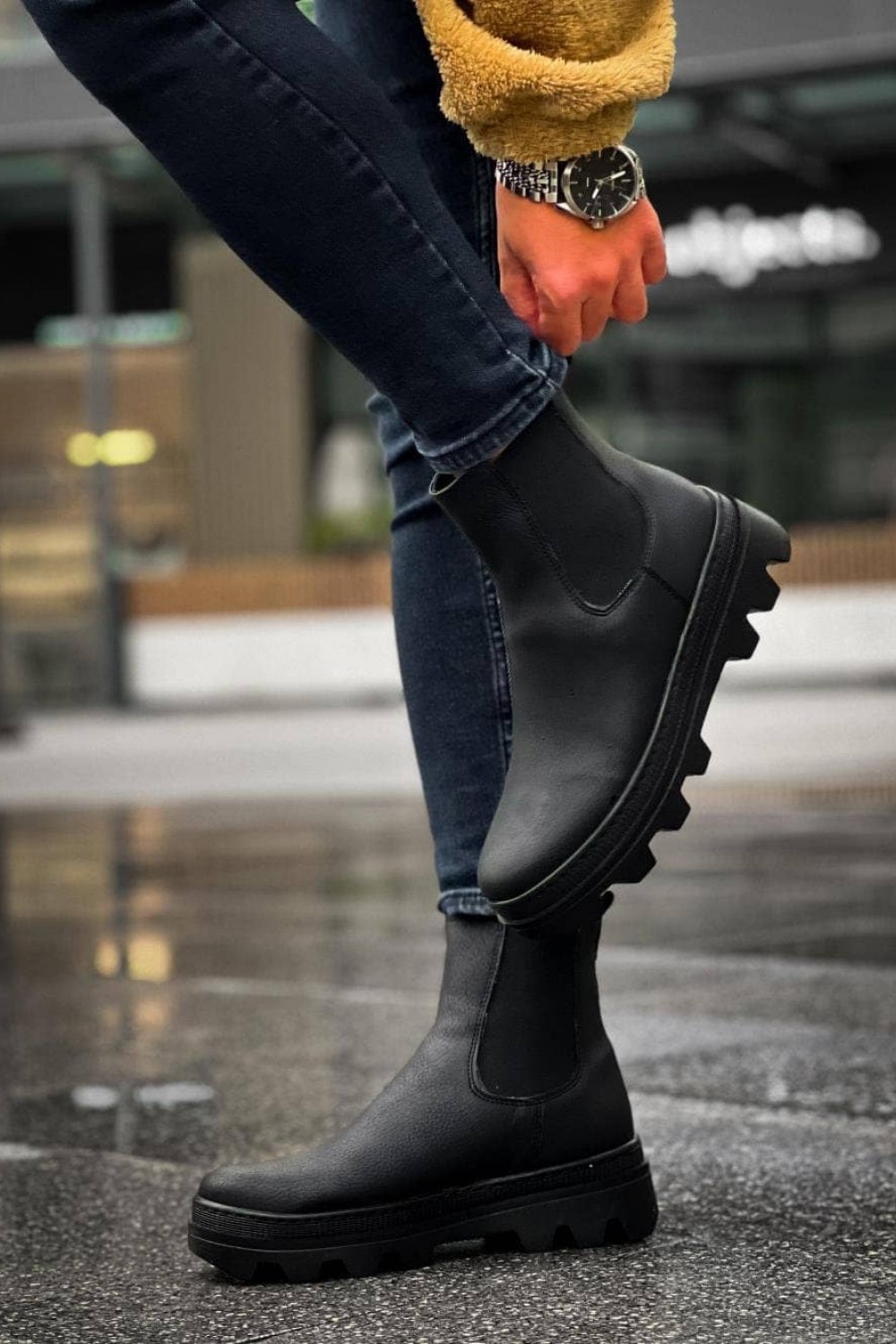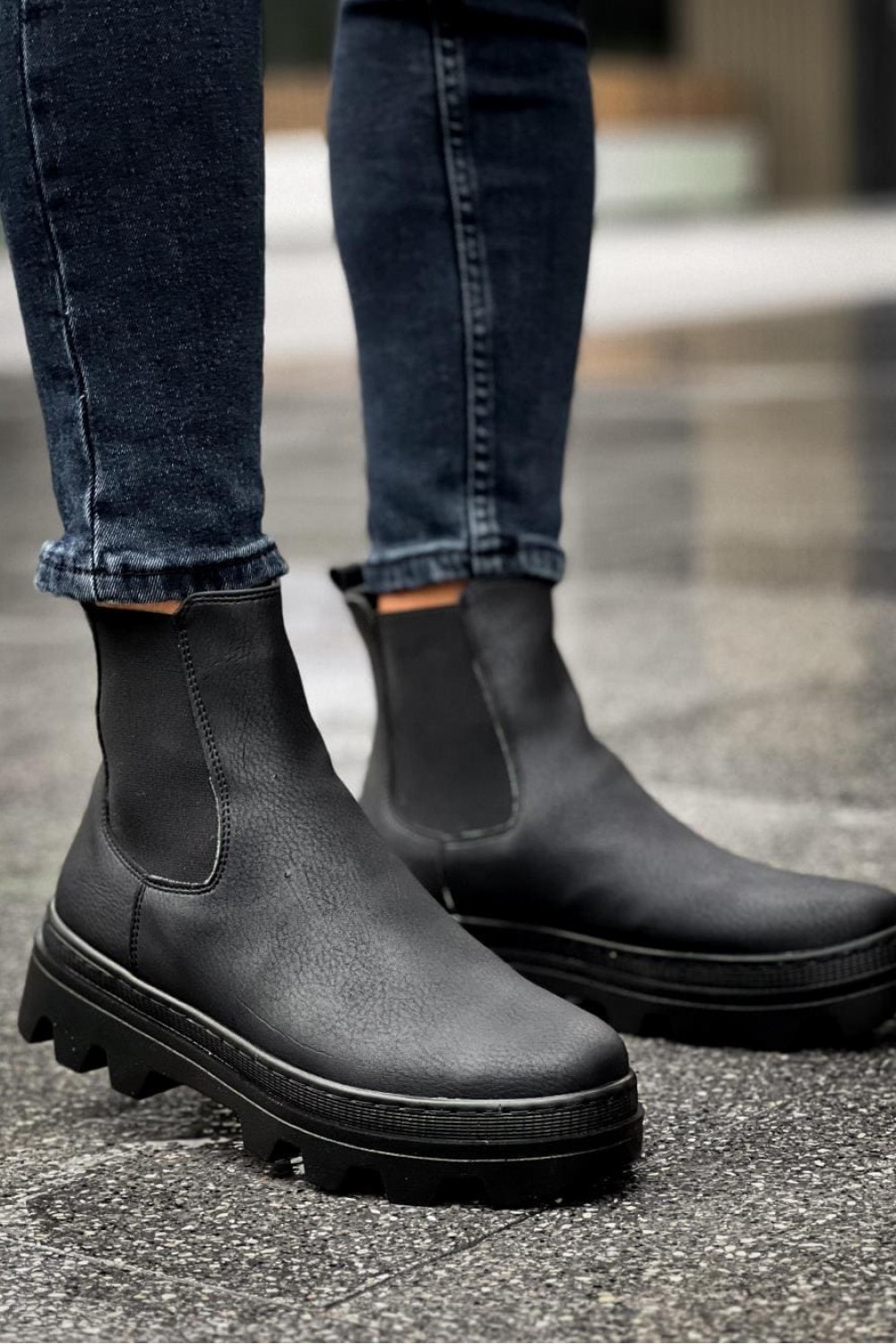 KN113 Erkek Spor Günlük Bağcıksız Cilt Bot CST - Siyah