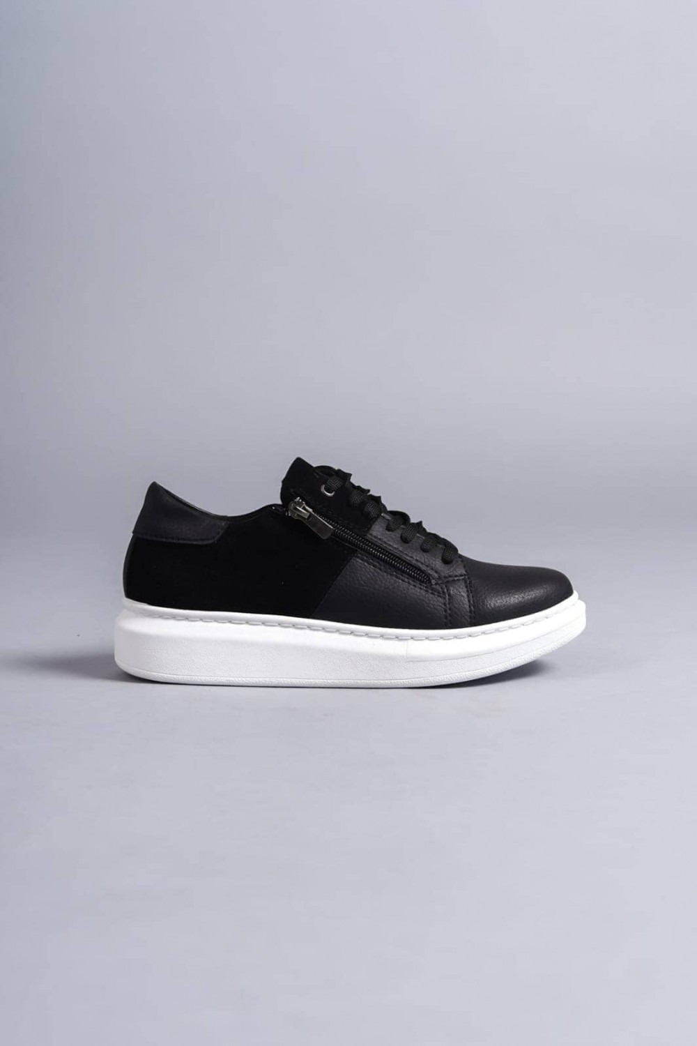 SLW155 Warrior Erkek Günlük Bağcıklı Fermuarlı Cilt Süet Spor Sneaker Ayakkabı CSBT - Siyah